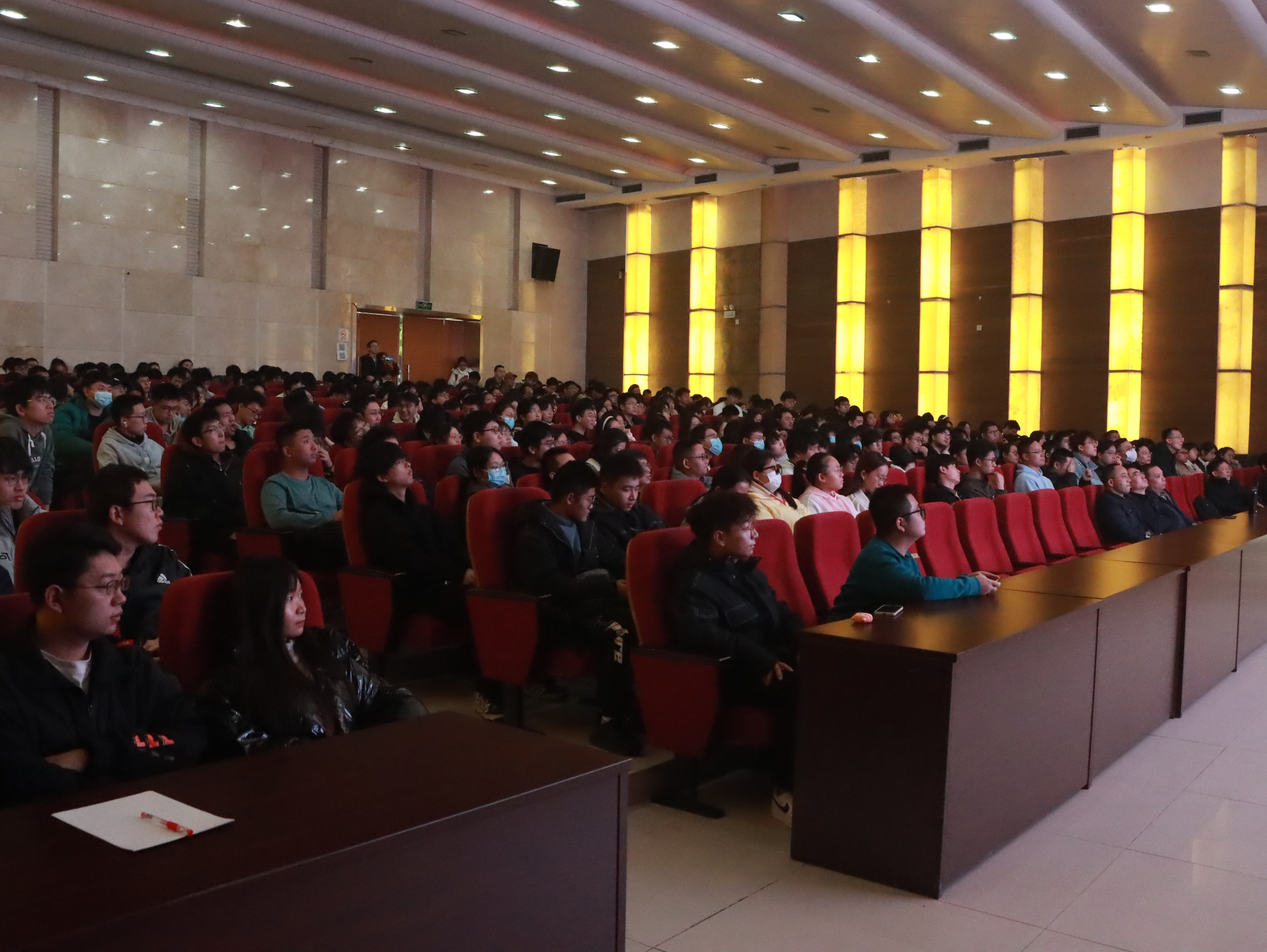 青年教师和来自全校热爱数学的同学们济济一堂,聚精会神地听完院士的讲解。