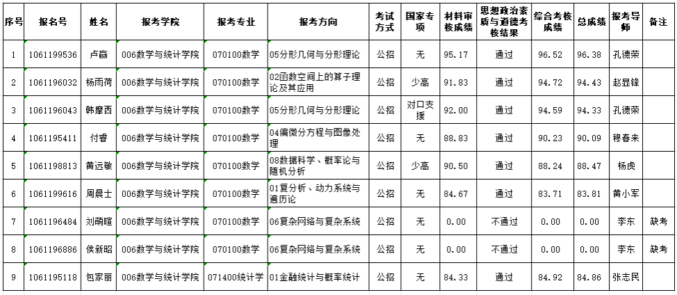 根据《关于做好2025年博士研究生(普通招考)选拔工作的通知》及中文无码 《2025年博士研究生招生录取实施细则》,现对中文无码 公开招考类博士研究生考生的思想政治素质与道德考核结果,以及综合考核面试成绩公示如下:
