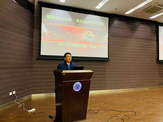 刘洪彪教授以《锤炼政治品格 做忠诚干净担当的共产党员》为题,从刘国鋕、车耀先、方志敏、叶挺、黄继光等优秀共产党员的鲜活案例引入,介绍了绝对忠诚是共产党员的政治本色、为什么要做绝对忠诚的共产党员、怎样锤炼做绝对忠诚的共产党员。新时代锤炼政治品格,永葆政治本色,做绝对忠诚的共产党员,就是要坚定理想信念,一心信党;增强党员意识,一心为党;坚决维护核心,一心随党;增强危机意识,一心护党。希望学员们学好党史这门必修课,加深对党的历史认识,端正入党动机,切实增强党性意识、提高政治素质,从波澜壮阔的百年党史中锤炼对党忠诚的政治品质。