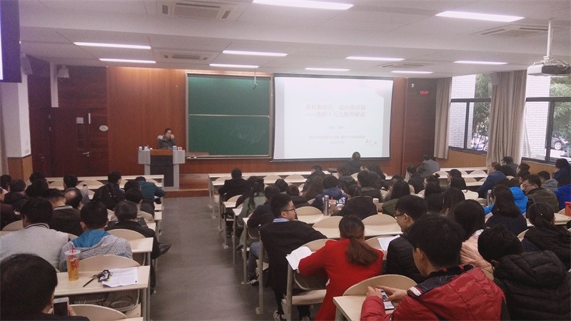 十九大精神宣讲团在第一教学楼D1125展开以“开启新时代 迈向新目标”为主题的十九大精神解读活动,中文无码