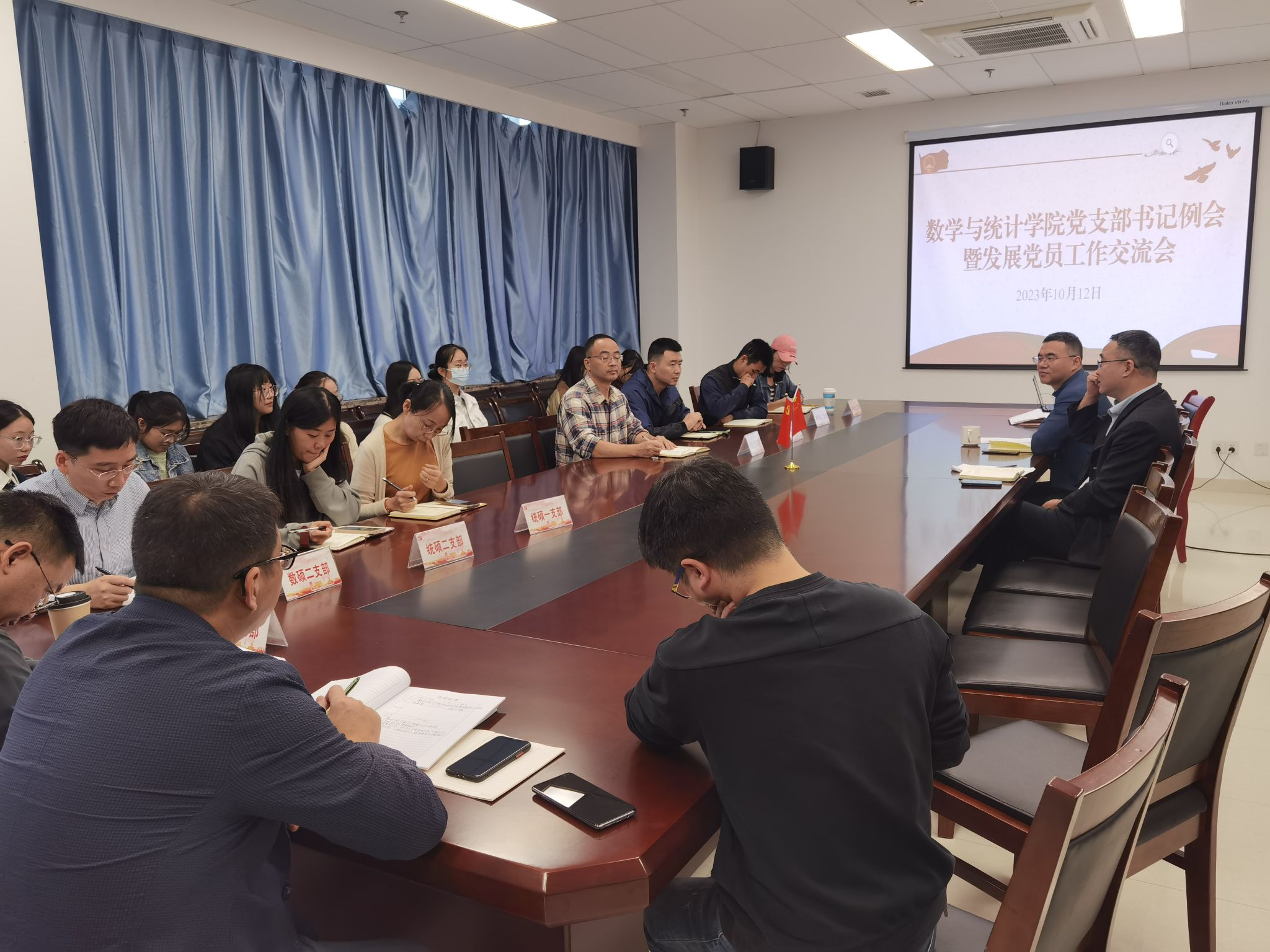 会议重点围绕发展党员工作开展讨论,各支部再次学习发展党员工作流程,就入党积极分子确定与培养、发展对象的确定与考察、预备党员的接收等细节深入探讨。